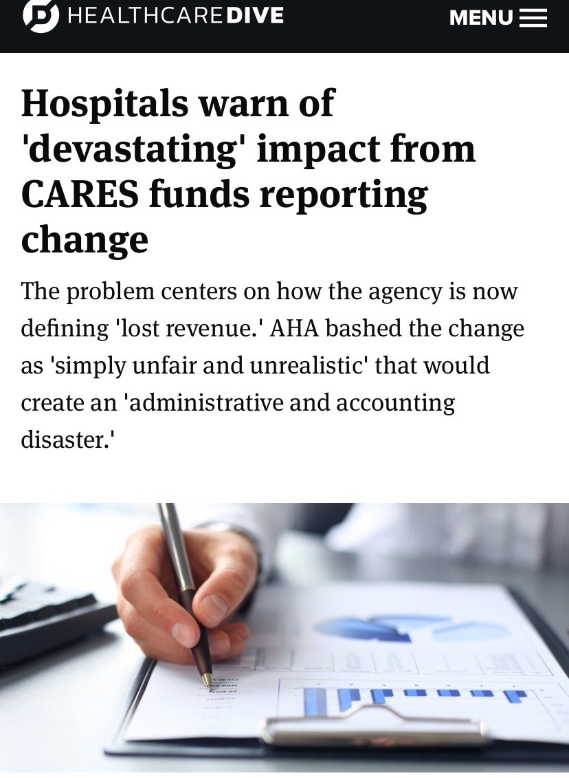 美国医院协会称,政府这一政策变化,将对医疗体系造成毁灭性打击,特别是农村以及为弱势社区服务的医院和医疗体系。