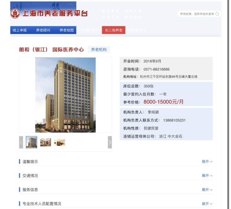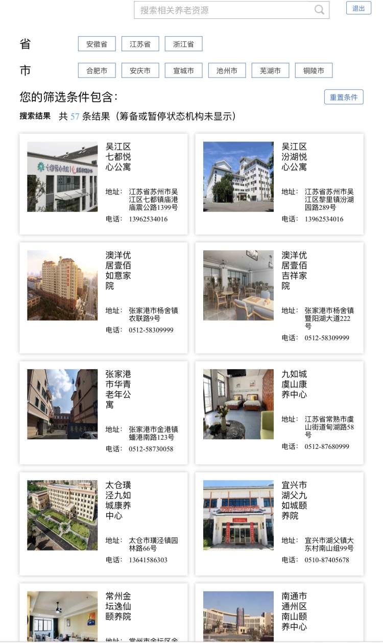 新闻晨报周到君上海市养老服务平台看到,长三角频道上已经可以进行机构查询、搜索。
