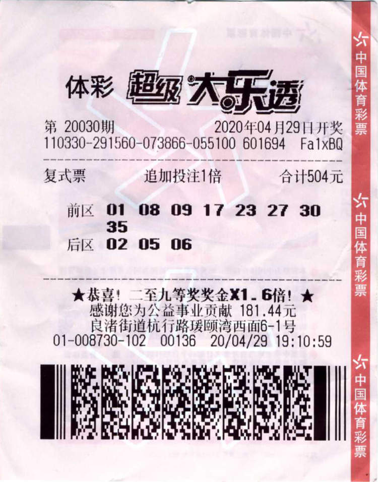 4月29日,大乐透“9.9亿元大派奖”首期开奖(第20030期),一对杭州80后夫妻单票擒奖2179万余元;