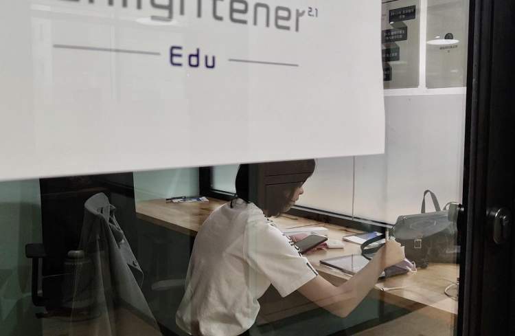 这里给学生提供了隔间、包房和自习室,一个个房间互相独立,教室里的桌子上放着学生自己的电脑,旁边配上资料、纸张与书籍等。