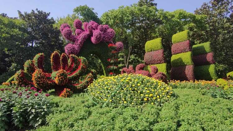 除了大型菊花景点,公园的香樟广场上,通过品种菊花及艺术造景的形式布置菊花品种,总共有400多个菊花精品品种,市民游客可以在此细细品味每一个品种的独特,感受菊花文化。