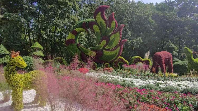 滨江森林公园搭建的菊花景点名为“凤凰涅槃”,设计理念取自凤凰涅槃的传说故事,展示中华民族迎难而上、自强不息的精神。同时,景点中还用植物搭建了野生动物獐,自多年前在滨江森林公园放归后,本土物种獐已经在滨江森林公园繁衍生息。