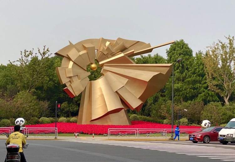 去年,申长路近舟虹路绿地上的《桨》、涞港路沿河绿地上的《锦鲤》、天山西路绥宁路绿地沿线的《绿窗》、苏虹路华翔路路口的《聚》等国家会展中心周边8个主要节点的雕塑作品让人印象深刻。
