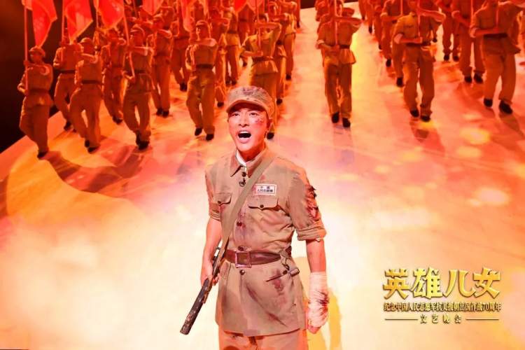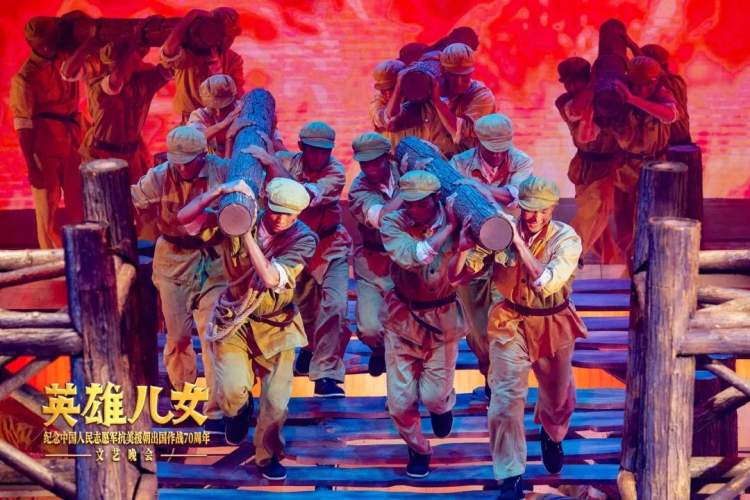 情景表演《向我开炮》、殷秀梅演唱的歌曲《英雄赞歌》等文艺节目则重现当年志愿军们战斗的飒爽英姿。