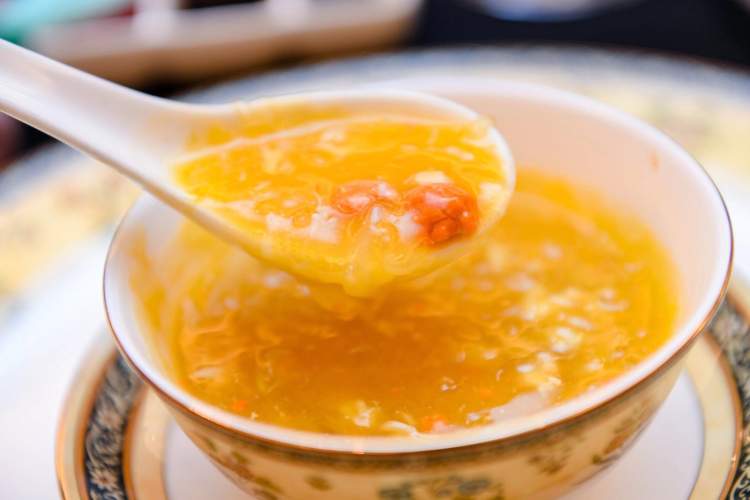 秋天经典的甜品——鸡头米桂花,这次高师傅则变花样搭配着蟹粉和虾仁做出了一道热菜——鸡头米蟹粉虾仁。晶莹剔透手剥河虾仁,莹润柔滑的鸡头米,由清淡的素油翻炒入味,淋上热腾腾的蟹粉,多种食材的鲜香经过烹饪,鲜香绵密,直让人惊呼鸡头米如此软糯,搭配着蟹粉,瞬间将咸鲜香提升了。