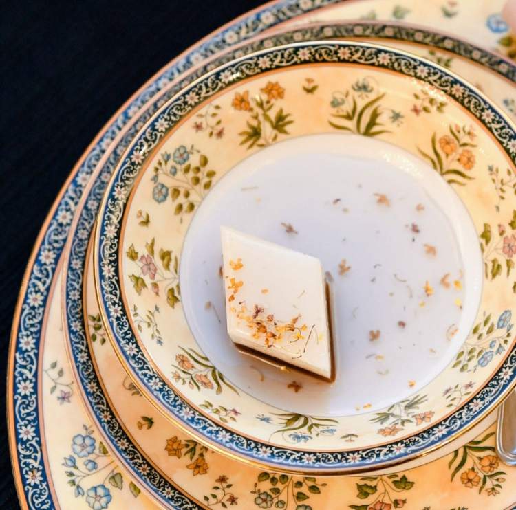 既是秋日怎能少了桂花入口?!将传统的红糖姜茶做成糕点,一道红糖姜茶桂花糕展现了高师傅的巧妙用心。辛辣的生姜中和了红糖的甜腻,撒上一把桂花,温暖甜蜜的秋意由此而来。