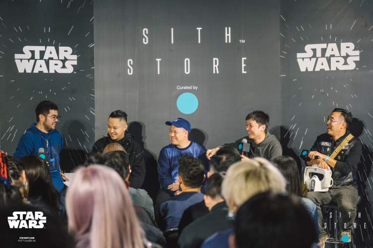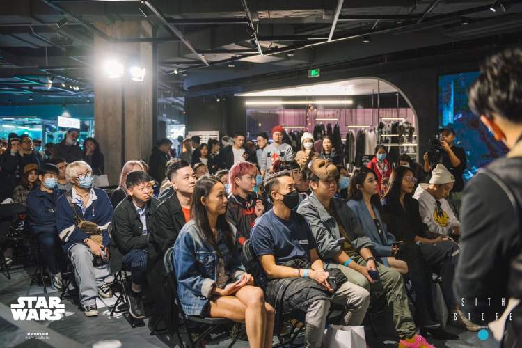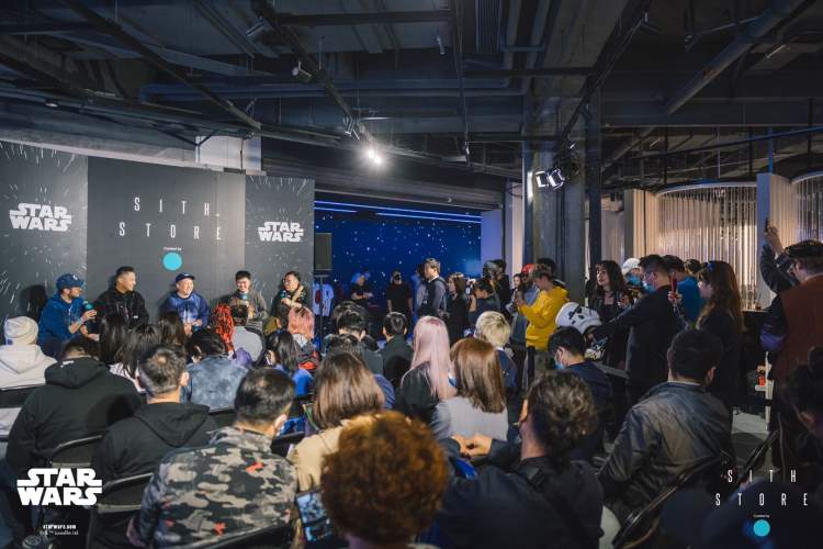 此次活动邀请到众多媒体及嘉宾到场,现场更请来了四位不同行业的资深星战粉丝 – 小白,Mark Mak,Sean Hung(资深空间设计师&星战爱好者)以及南方战士(星球大战中文网站长,百度“星球大战吧”吧主,知乎“星球大战专栏”维护人),机车侦查猫(星战资深模型爱好收藏者)共同探讨星战相关话题。此次的Panel Talk 围绕“加入黑暗面”为主题进行讨论,小白作为资深潮流行业市场部总监,Mark Mak以其运动潮流行业的专业身份,Sean Hung从潮流生活角度出发,以及南方战士、机车侦查猫专业的星战文化储备展开了别有趣味的行业交流。