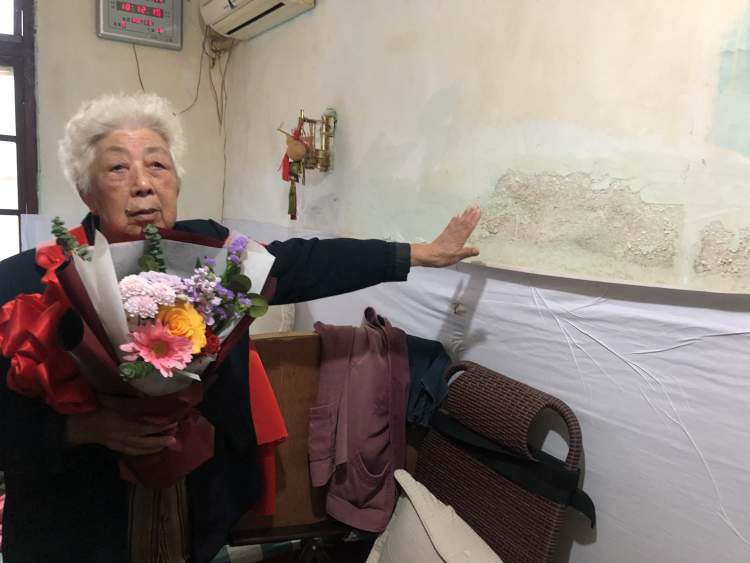 记者在周皇球奶奶家看到,床边的墙壁早已发霉脱落。不过这还不是最要紧的,“下面的电源接口也潮湿,插电还能有‘啪啪’电花,很危险。”老人一边描述着,一边无奈地摆摆手。