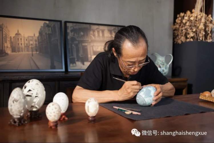 1980年的大连火车站,一列来自上海的火车上,走下来一个年轻人。奇怪的是,他没有跟着人流流入这座城市,而是被附近的一个手艺人吸引,站在一旁看了足足一下午。这个手艺人手里,拿着一个蛋壳在雕刻。而这个年轻人,正是本文的主人公——袁家钊。如今,他已是上海非物质文化遗产淞南蛋雕技艺的传承人。
