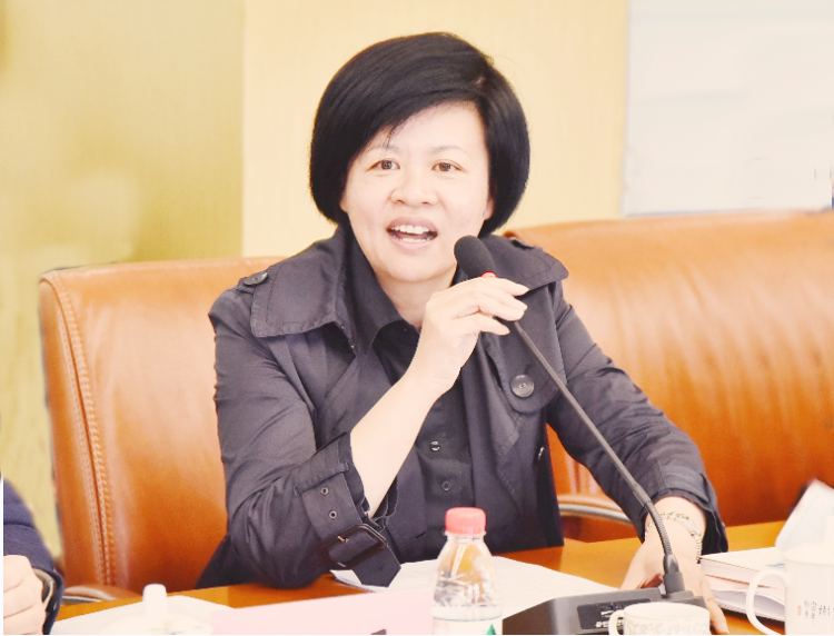 ▲宝山区教育局副局长朱燕萍对区域推广高中种子课程方案的进行了任务布置