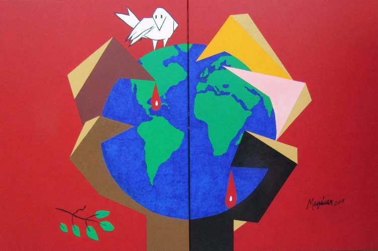 其中,有表现丝绸之路的题材,有表现家园之美的作品,有表现和平、和谐的文明交流互鉴的作品。这些作品生动展现了艺术家们用诗意的视觉语言所进行的美与善的对话,也生动诠释了“文明是多彩的、平等的、包容的”的主题。
