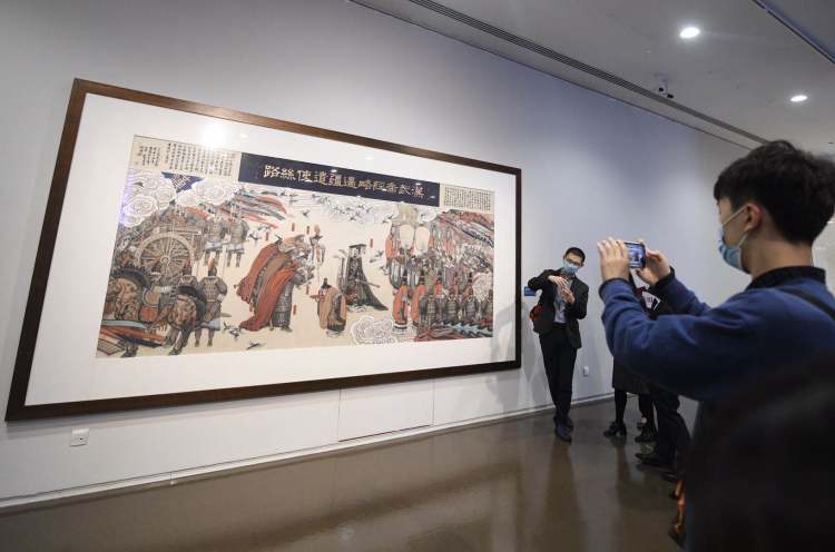 “美丽丝路”“美好家园”“美美与共”三个篇章串起了整个展览,艺术作品生动体现出“和平合作、开放包容、互学互鉴、互利共赢”为核心的丝路精神。