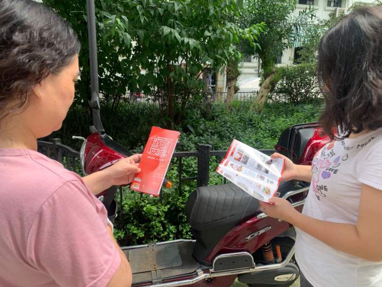 ▲社区居民阅读电动自行车消防安全宣传折页