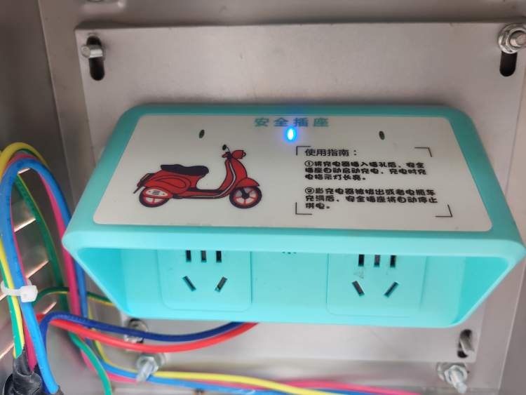 四明邨的一户居民为周到君展示了“外墙挂壁式家用安全充电箱”,记者看到,和普通的家用插座不同,充电箱内的安全插座上有一盏指示灯,插座上还附上了使用指南。记者阅读指南得知,当居民将充电器插入插孔后,安全插座会自动启动充电,充电时充电指示灯常亮,而当充电器被拔出或者电瓶车充满电后,安全插座将自动停止供电。