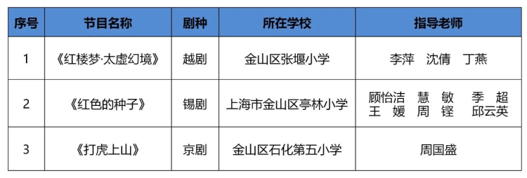 据悉,2017年以来,金山区开始实施“戏曲进校园”工程,在全区学校普及传统戏曲文化的基础上,探索戏曲艺术传承与发展的长效机制,逐步形成“金山特色”。