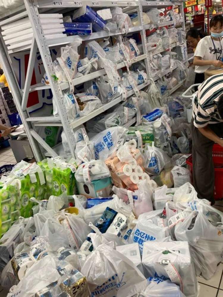 消费者通过饿了么,找到附近的超市、便利,囤日用、囤生鲜、囤零食。不少超市、便利店几乎被蓝骑士搬空。