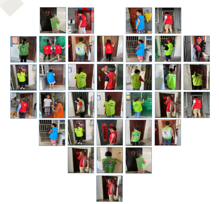 居委会在日常民情走访中,了解到老年人对生活服务以及精神慰藉有着迫切需求。为切实解决好这一难题,居委会对区域内的失独老人、空巢老人家庭进行了全面排查,成立了“敲门行动”小组-“老伙伴”团队,共计16名志愿者加入。