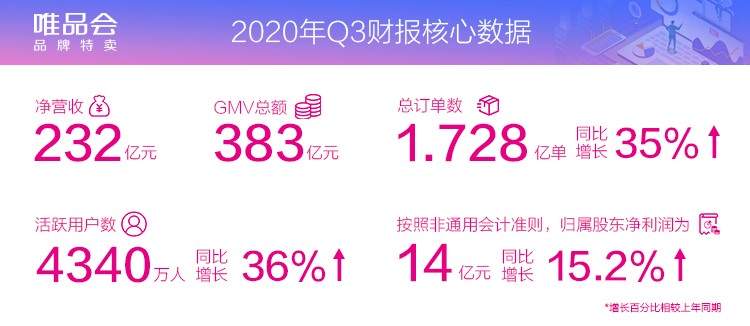 北京时间11月13日,品牌特卖电商唯品会(vip.com,NYSE:VIPS)披露了其未经审计的2020年第三季度财务报告。