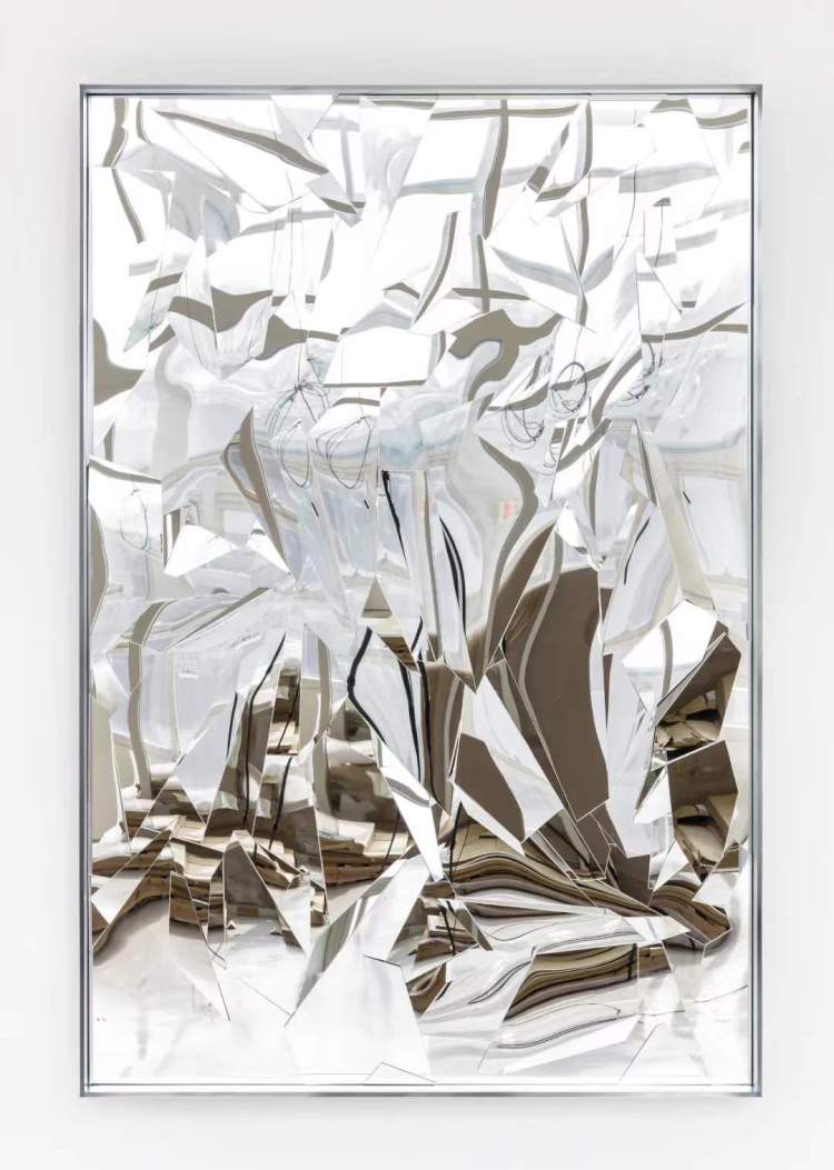 acrylic mirror, plywood, and galvanizing on nickel-plated aluminum frame