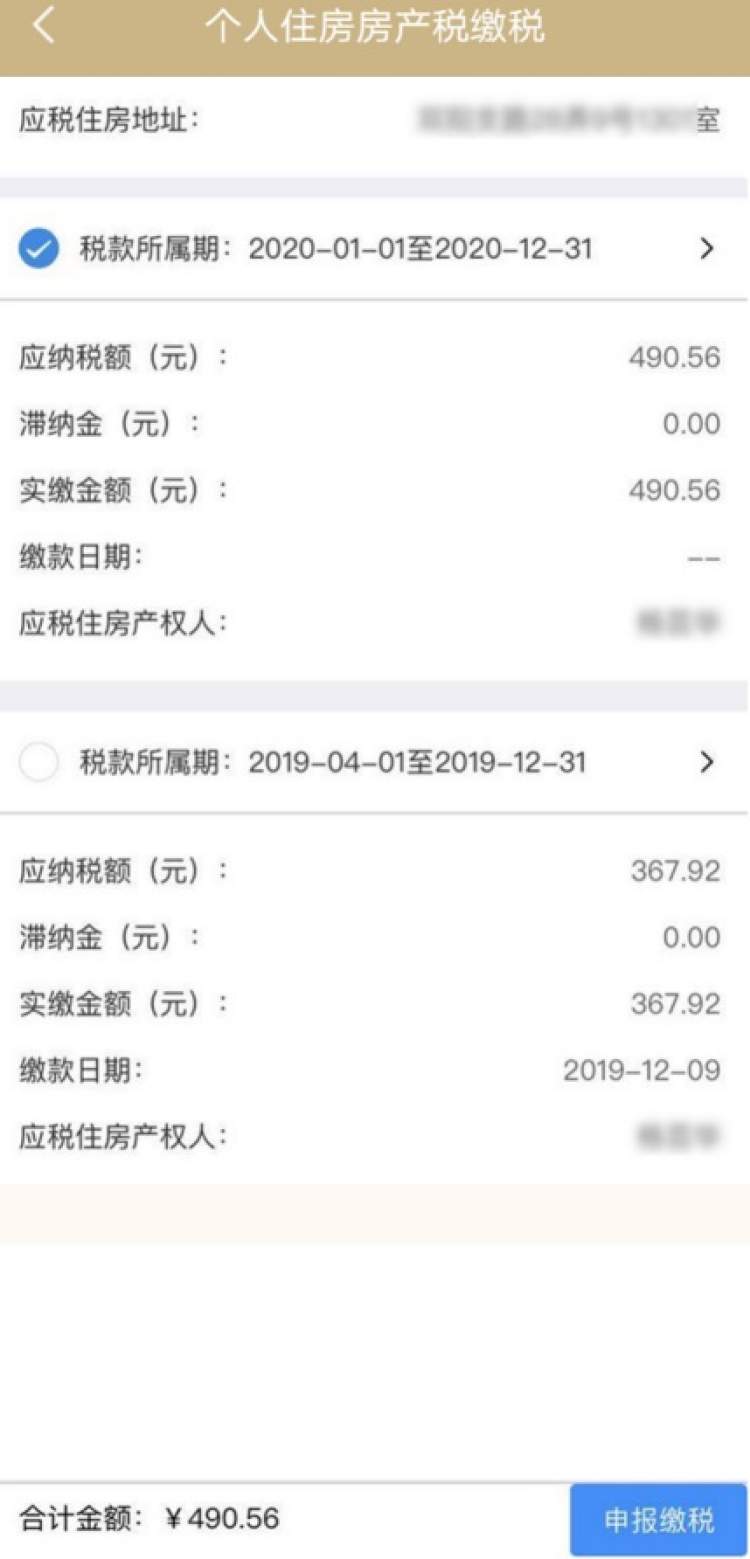 今日起至12月31日,市民用手机实名登录“随申办市民云”APP的“个人房产税缴纳”,即可随时随地完成缴税操作。