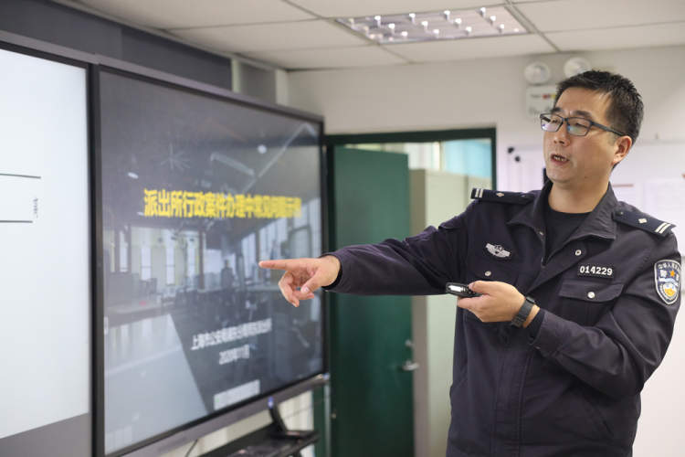 在浦东公安分局周东派出所“智能训练点”内,一场特殊的培训课程正在进行,例行检查工作所需的语言对话、文书制作、系统操作等工作要素均被全程记录,以第一视角呈现在参训民警眼前,从而打造出记录完整、精确还原的新时代授课形式,营造出真实、沉浸的教学体验。