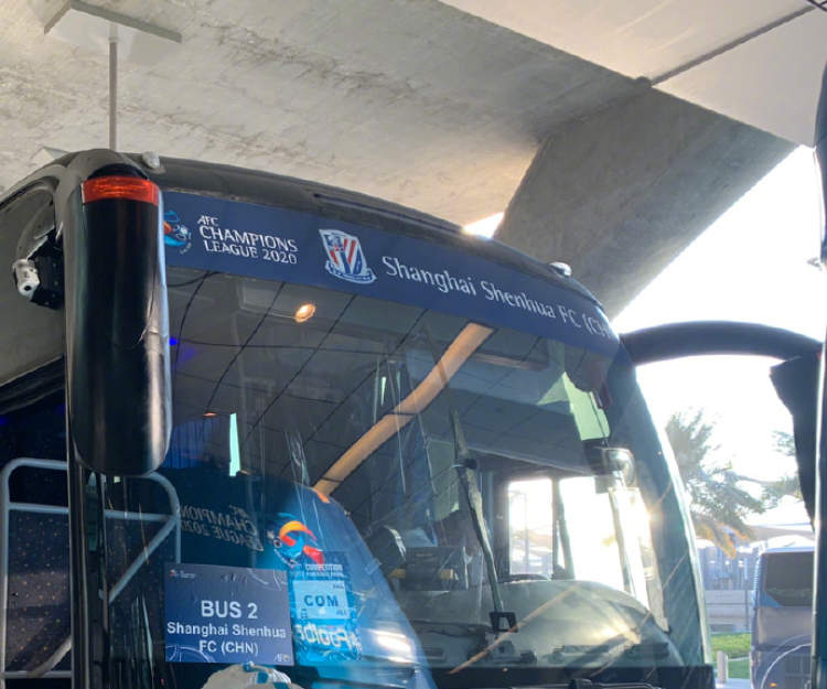 组委会同时给申花准备了两辆大巴,这两辆大巴都以申花的主色蓝色装饰,且车身上有申花的队徽,将全程陪伴申花征战此次亚冠联赛。