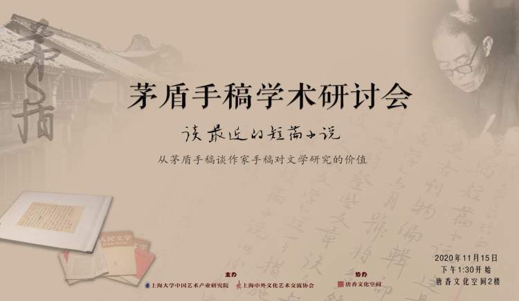 2020年11月15日,上海大学中国艺术产业研究院主办的“从茅盾手稿谈作家手稿对文学研究的价值”研讨会在上海唐香文化空间举办。