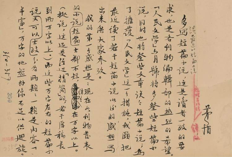 同时,茅盾手稿呈现出典型的文人书法特征,笔迹中体现出温文尔雅的仪态和清雅不俗的风骨,因此也是书法家的翰墨。
