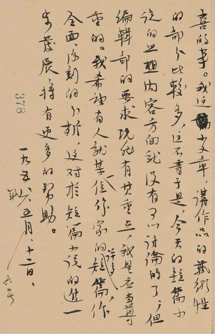 周立民还提到了文学作品的编辑、审稿甚至排印工人对作品的影响。比如这份手稿上本来并没有标题,“谈最近的短篇小说”是后来用钢笔加上去的,应该是编辑同茅盾商讨出来的。