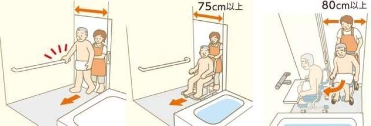 浴室门的宽度也是经过周密计算的,巧妙避免了轮椅在门口卡住的风险。