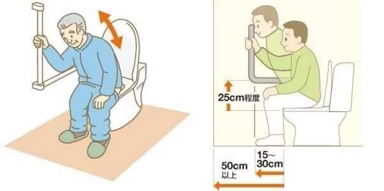 进入浴室后,在墙体的一侧还有最适宜手握的圆体扶手供老人握住。