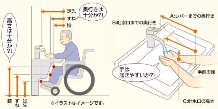 除了浴室,每个房间内的卫生间设计也是量身打造的,每一个洗脸盆的高度,洗脸盆的下方空间的大小,坐便器的扶手位置等都是根据老人的情况而设计的。