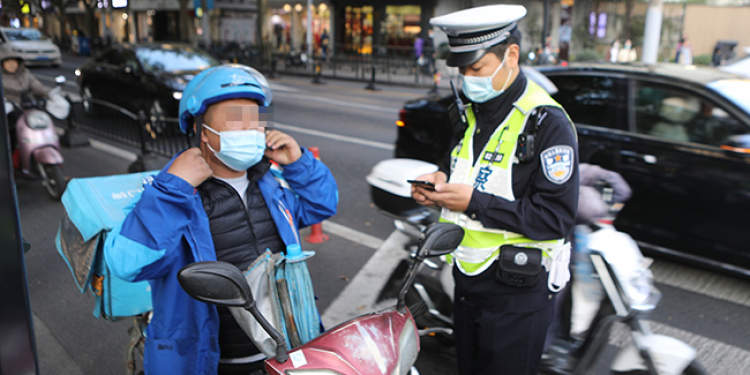 徐汇交警为骑手“传经送宝”
