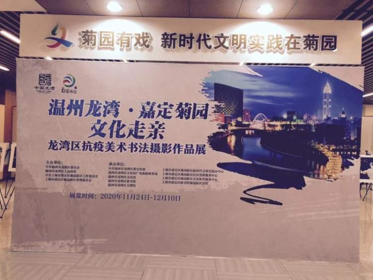 11月24日,温州龙湾·嘉定菊园文化走亲暨龙湾美术书法摄影作品展开幕式在菊园新区社区文化活动中心举行。本次作品展共展出了100幅龙湾名家书画作品、龙湾民间优秀摄影群体龙影社摄影作品,记录了在疫情期间,龙湾区广大群众众志成城、齐心抗疫的历史画面,传递了满满的正能量。