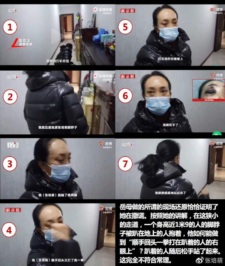 按照岳母的讲解,她经历了“被从后面打倒、被脚踹、拳打;趔趔趄趄站起来、又被数拳打倒;被拖行数米、又被摁倒不能动弹;眼睁睁看人离去”的漫长过程。