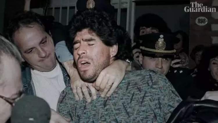 同年,警方在他的住所发现了毒品,马拉多纳被捕入狱。