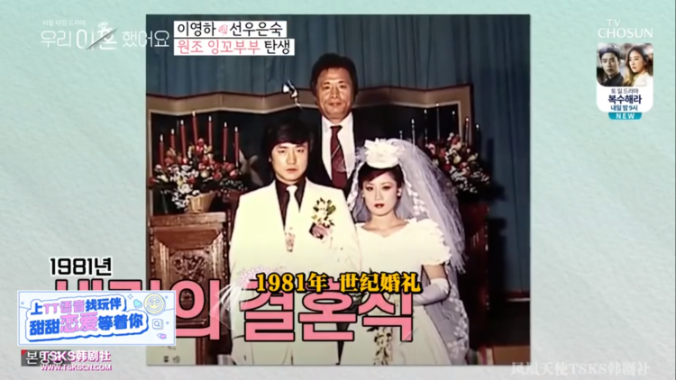 1981年二人走入婚姻殿堂的时候,鲜于银淑才22岁,这对神仙眷侣吸引了无数聚光灯的追逐,他们的婚礼盛大到被称为世纪婚礼。