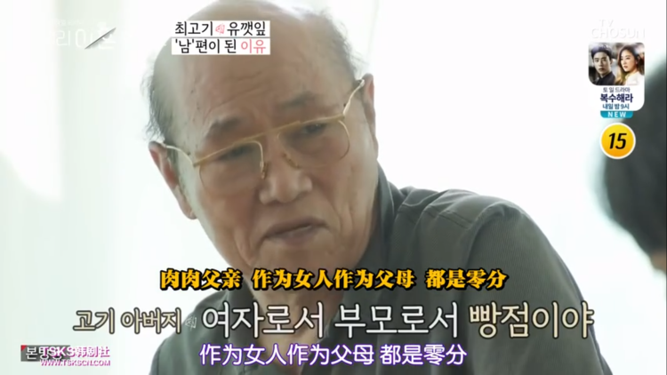 随后,男生爸爸的出现解开了谜题,如今已经80岁的爸爸老来得子,并带着老一辈人十分传统的男权观念表达着对这位儿媳的不满。