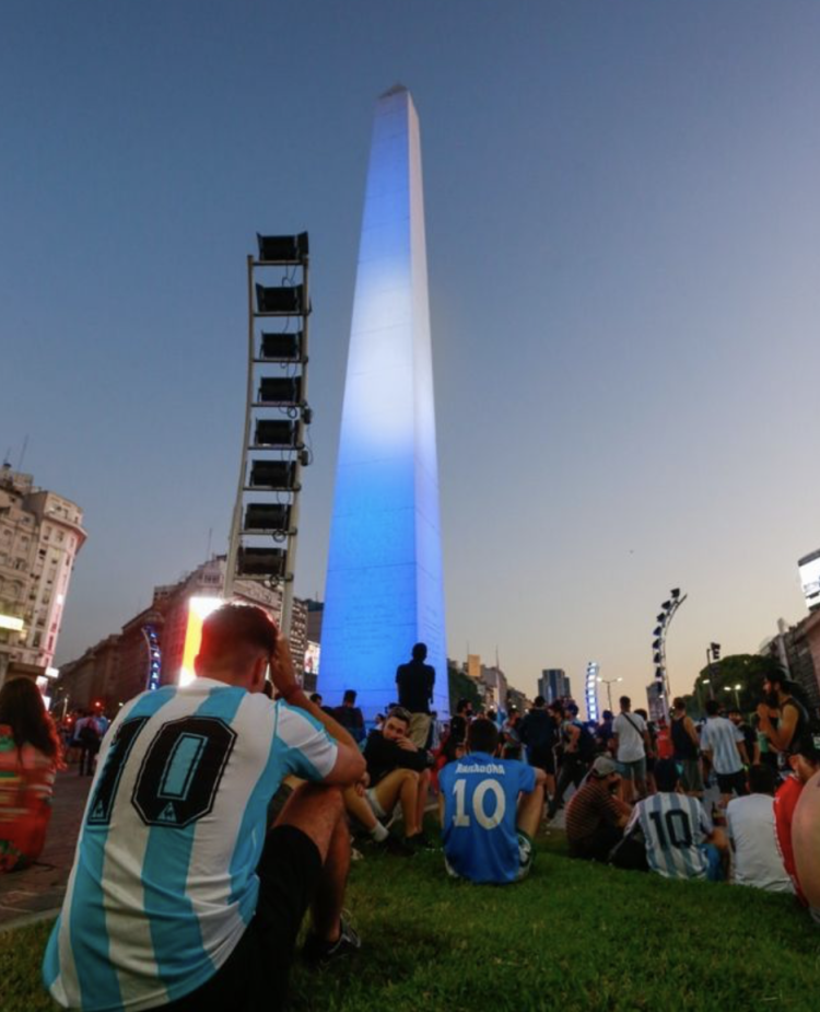 在马拉多纳去世后,全世界各地球迷都在为这位传奇巨星的突然离世感到震惊。成千上万的阿根廷球迷聚集在阿根廷首都布宜诺斯艾利斯的尖碑广场,纪念马拉多纳。