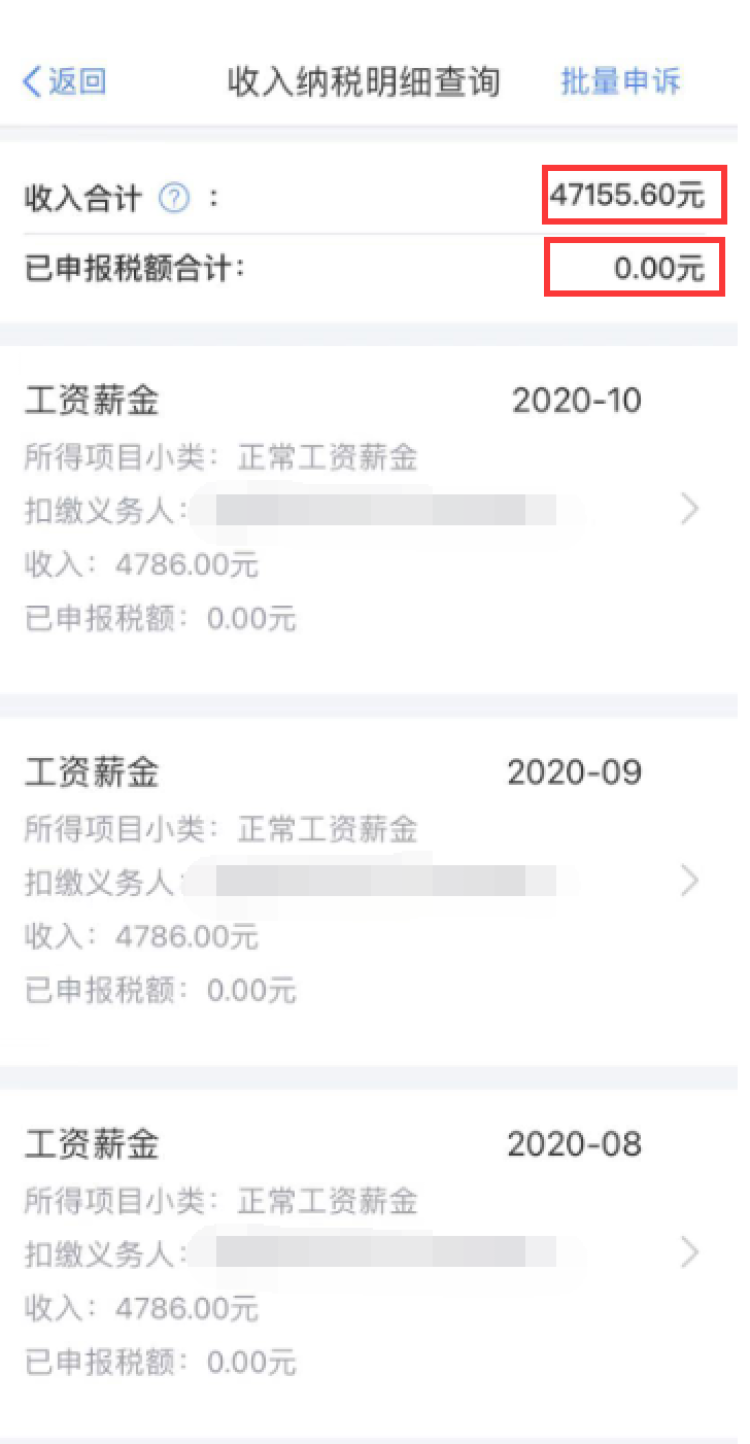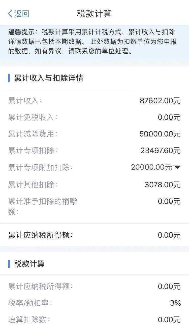 点击某一月份的申报记录,即可见收入、已申报税额、扣缴义务人、专项扣除等详情信息