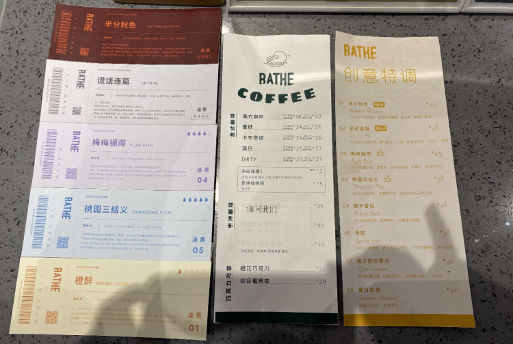 △吧台区的柜面上除了菜单之外,还有一排“澡票”