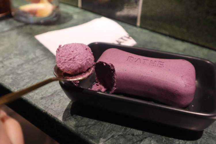 同去的小伙伴觉得味道还不错,酸酸的口感,内里还能尝到黑加仑果肉。是不是因为外形的心理暗示,周到君吃起来总觉得就是慕斯味道的香皂~