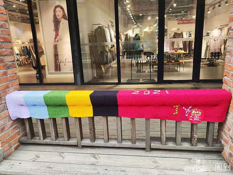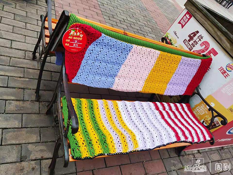 小树、座椅都穿上了毛衣,这个冬天好温暖