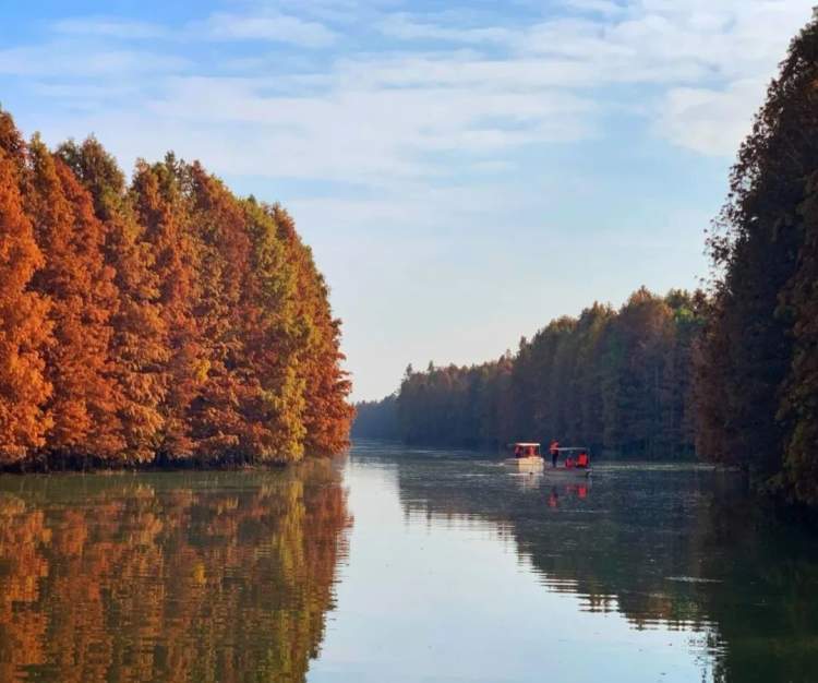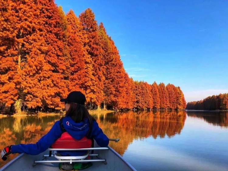 除了在岸边欣赏,林中漫步,游船赏红杉也是个不错的选择。“两边都有红衫,整条船是在红衫林中穿过,全程大概在20分钟左右,望过去的每个景都是不一样的。”上海海湾国家森林公园工作人员王帅介绍到。