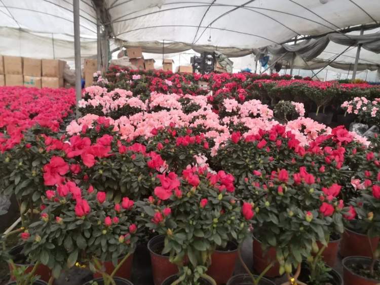 大棚内,各种鲜花竞相绽放