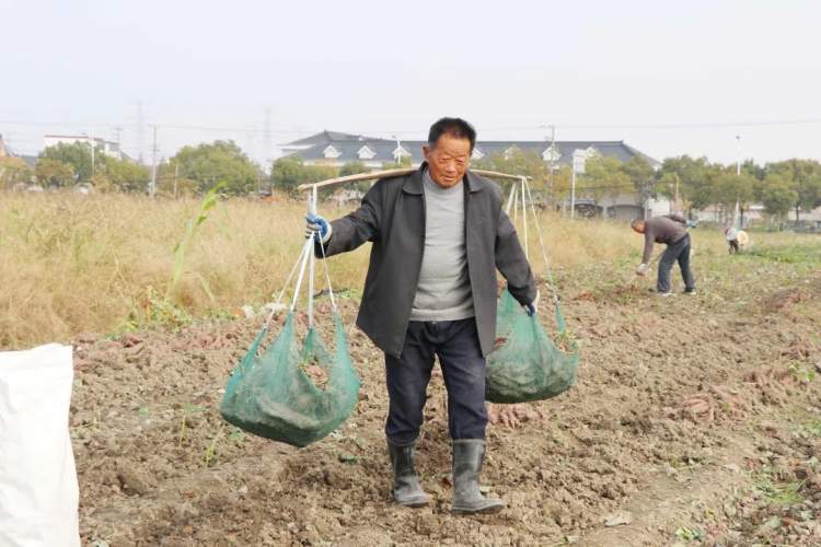 当天下午,长浜村村民都在田里忙活,有的锄地挖红薯,有的则挑着沉甸甸的担子往村头走去。去年没赶上试种的罗国方,今年收获颇丰。