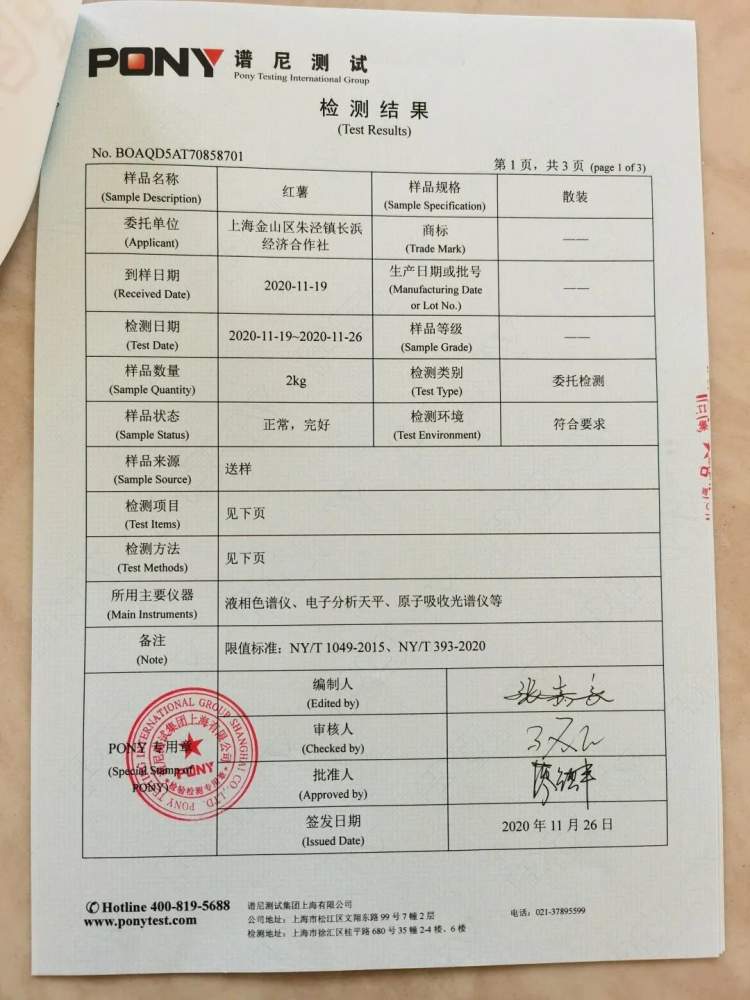 为了让村民们种得放心,市民们吃得安心,村里还主动将小红薯送检,保证食品安全。