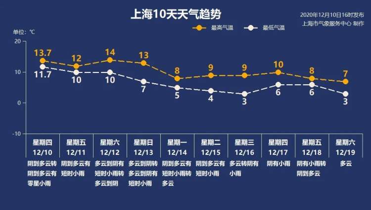 今明阴雨雾霾齐上演 为了周日到达的那个冬之大神 周到君 2020-12-11 来源:周到上海 今天阴到多云,有短时小雨,雨势不大,但雨伞还是要常备身边,偏北风3-4级,最高温度12℃,最低温度9℃,有轻度霾。 冷空气预计将在周日抵达,大风、降温、降水齐上阵,下周一、二、三气温全线跌到10℃以下,还不时有雨水出没,湿冷刺骨的体感一级准备,保暖工作要做好哦~ 来源:周到上海 作者:周到君 赞一个 (0)
