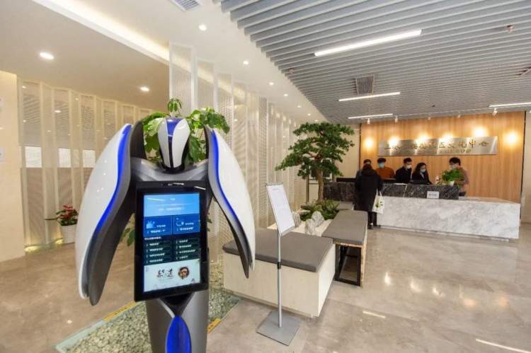 中心的大厅入口处,一台名为“大天使”的机器人上前迎客,解答读者提出的“图书馆在哪里?”“今天天气怎么样?”等问题。一块数据可视化大屏,实时更新着当日客流量、位置分布、用户特征等数据。