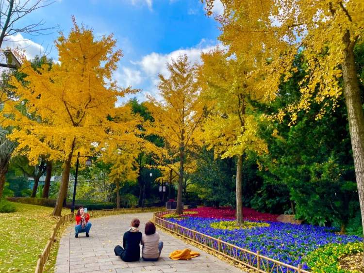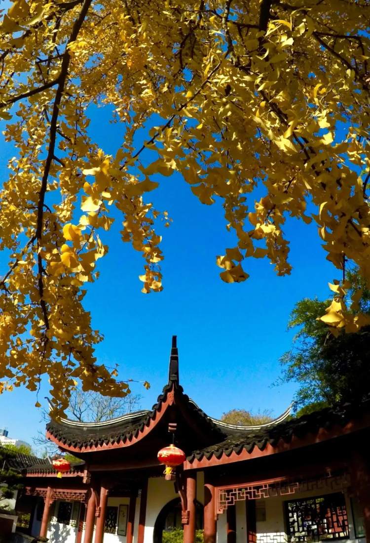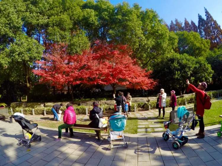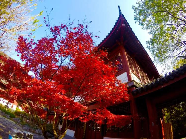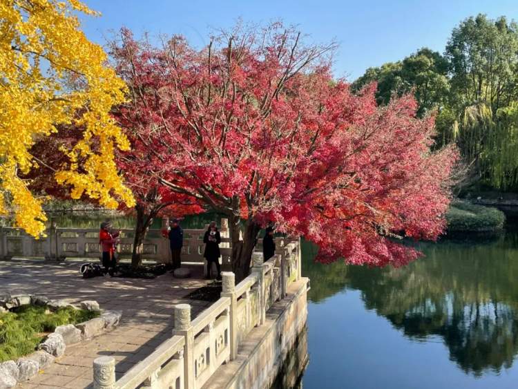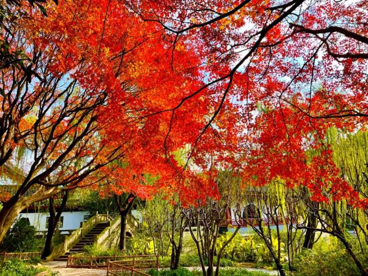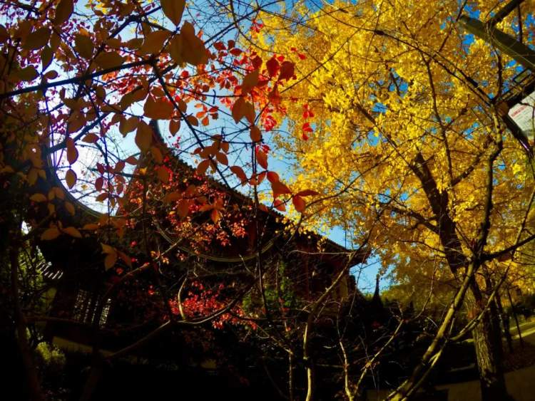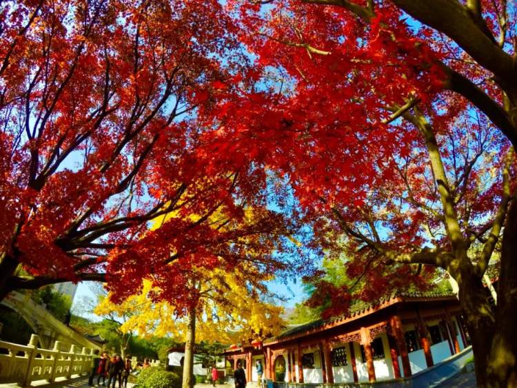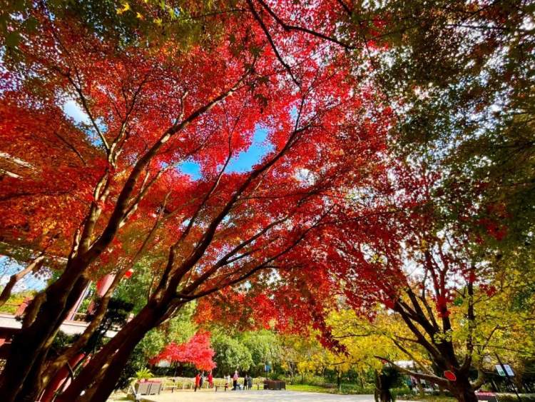 古华园内栽了许多的红枫和银杏